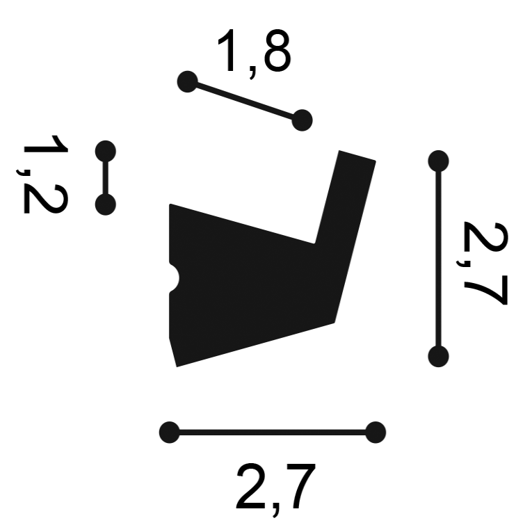 Flexible version of the CX189. Compact angular design profile for indirect LED lighting. The subtle shadow line adds to the lighting's ambience. Designed by Orio Tonini. Installation remark: It is necessary to screw this profile on the wall. Use an aluminum tape on the inside of the profile, or an aluminum LED support to avoid the light showing through the moulding. Flex Radius: R min = 90 cm