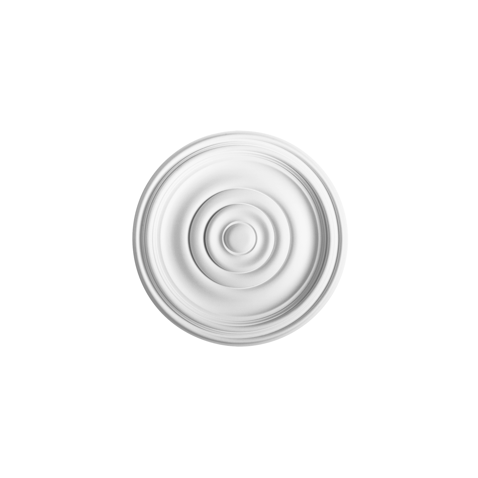 Small central ceiling ornament with concentric circles. This simple design fits any decorating style. Room to conceal cables.