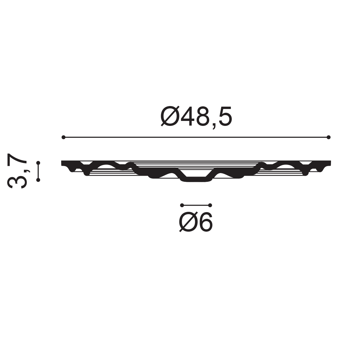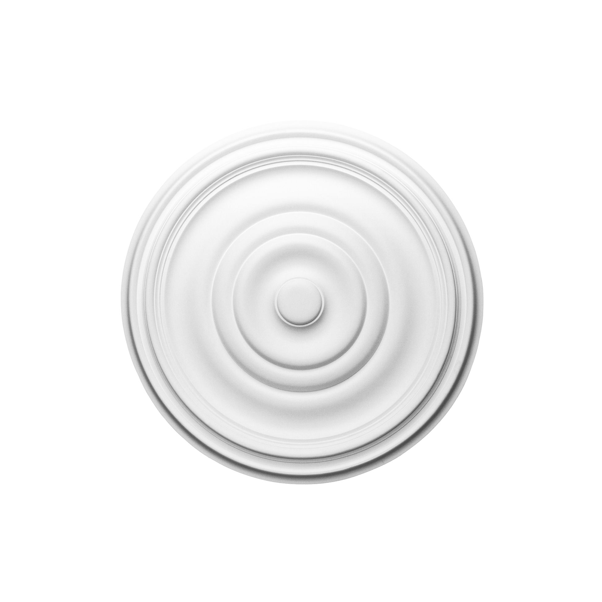 Medium-sized central ceiling ornament with concentric circles. This simple design fits any decorating style. Room to conceal cables.