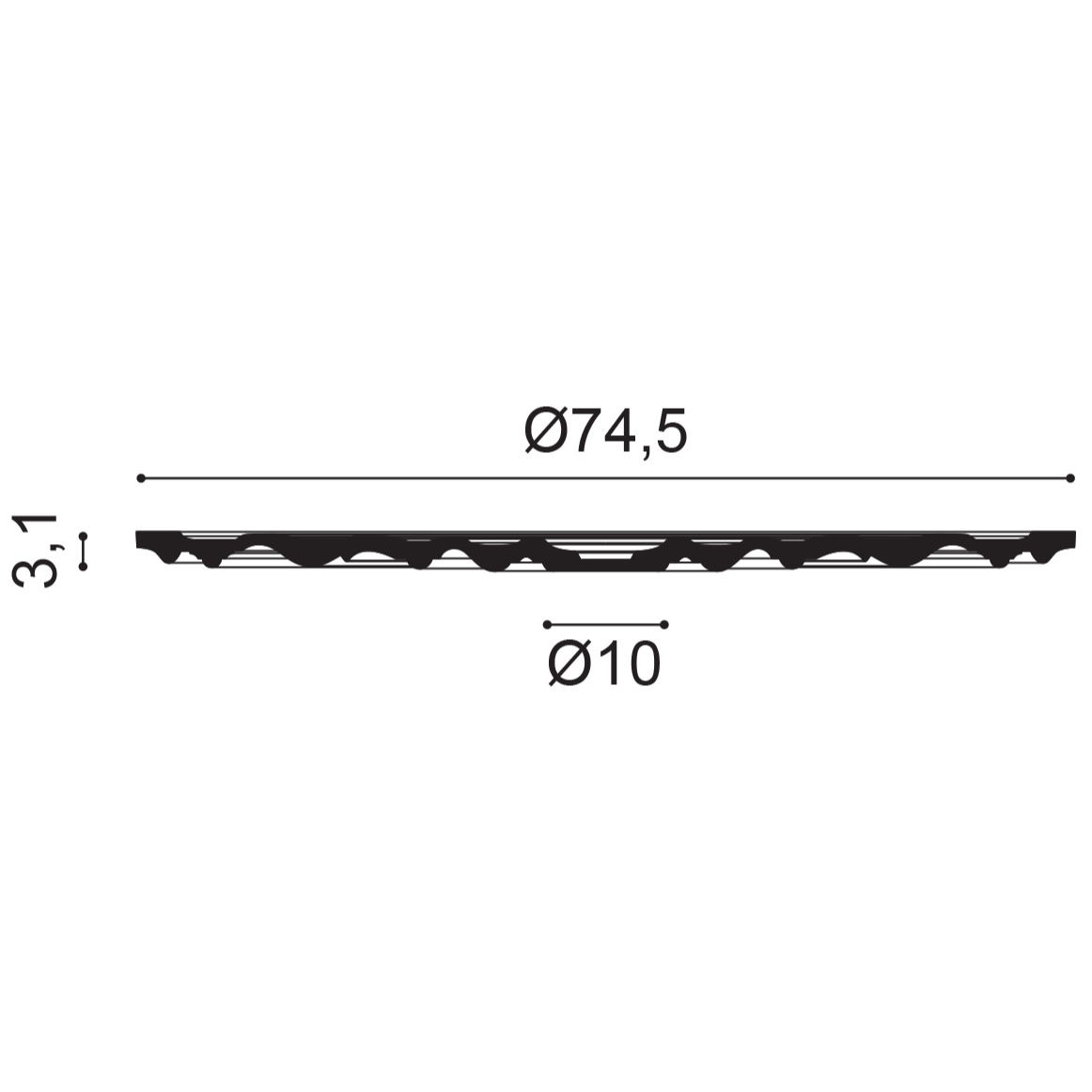 Large rosette with concentric circles. Can be used to conceal cables. Installation remark: It is necessary to screw this profile on the wall.