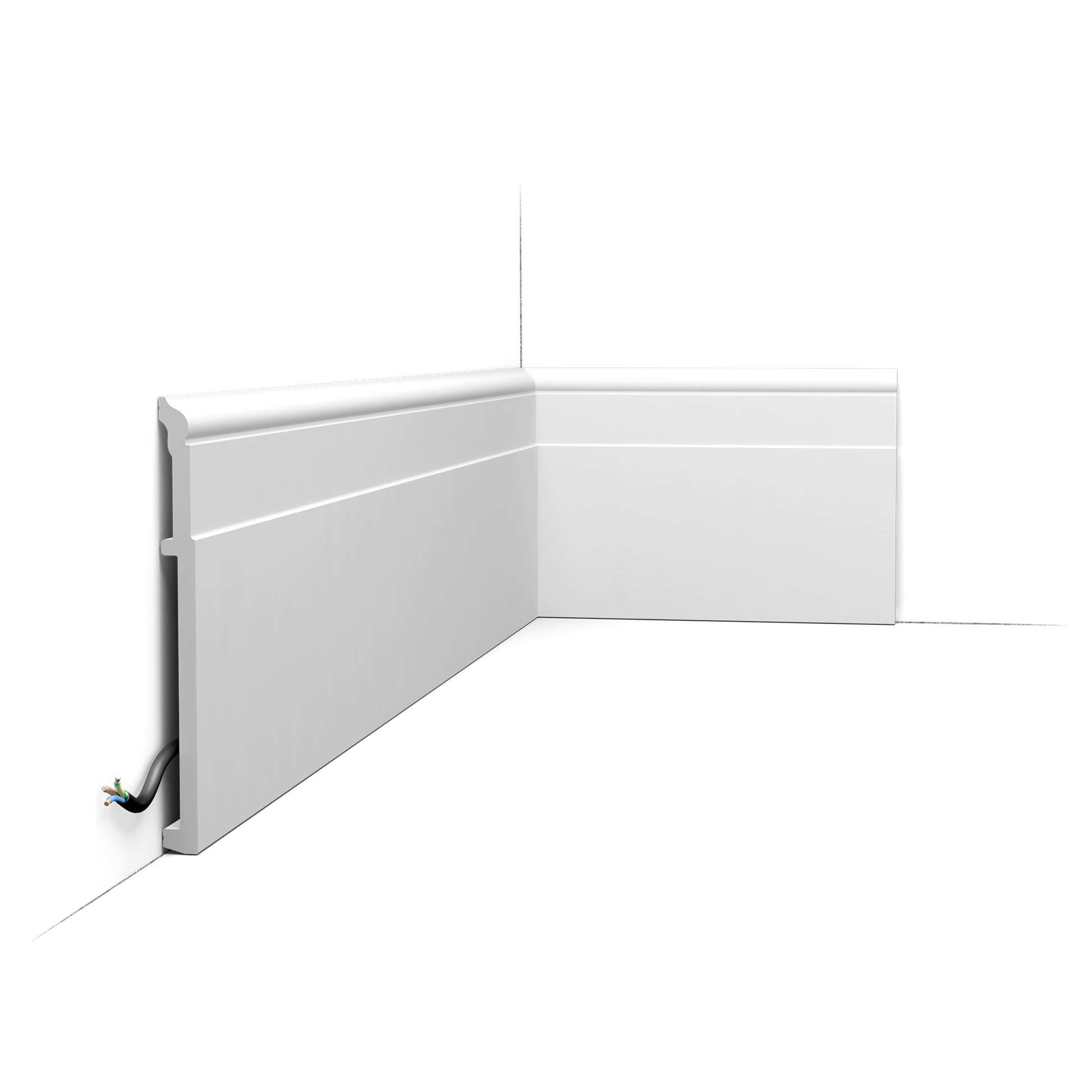 The SX156 Orac Skirting Board by Orac Decor offers a seamless transition between wall and floor, effectively concealing imperfections while enhancing the aesthetic of your space. Ideal for both residential and commercial projects, this skirting board elevates interiors with its modern design.