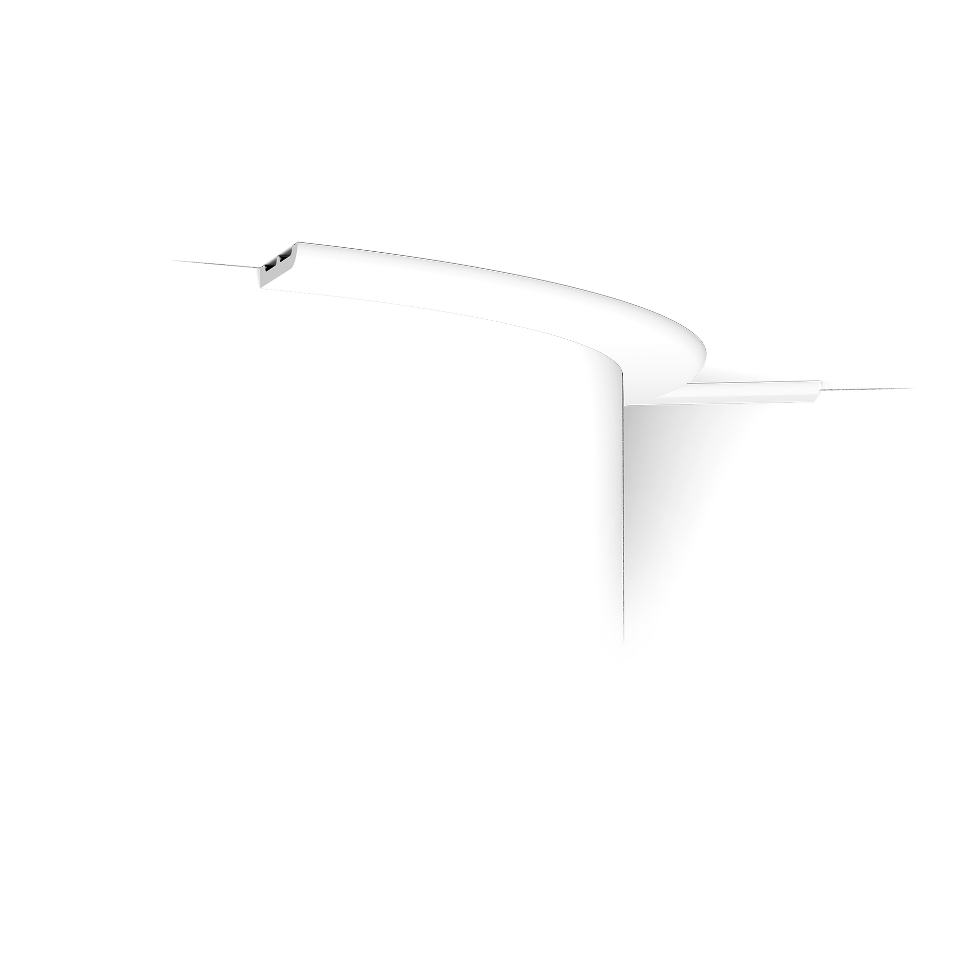 Flexible version of the SX183. This multifunctional cornice moulding with rounded top provides endless possibilities. Thanks to its Flex technology, curved walls and surfaces are no problem. Installation remark: It is necessary to screw this profile on the wall. Flex Radius: R min = 40 cm